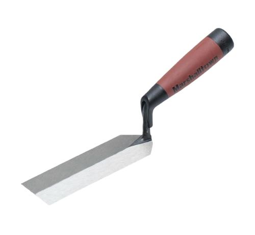 The MARSHALLTOWN Margin Trowels slim flat-nosed design helps you easily level and spread mortar or tile adhesive into tight places where larger trowels won’t fit. The 5”, 6”, or 8” blade and tang are forged from a single piece of durable high carbon steel that is then tempered, ground, and polished for maximum balance and flexibility. Choose between our resilient DuraSoft® with an integral finger guard, grippy DuraCork®, or classic hardwood handle with metal ferrule. This product is Made in the USA with Global Materials.