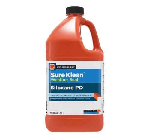 Sure Klean® Weather Seal Siloxane PD (predilute) is a ready-to- use, water-based silane/siloxane water repellent for concrete and most masonry and stucco surfaces. Siloxane PD will not impair the natural breathing characteristics of treated surfaces. It helps masonry resist cracking, spalling, staining and other damage related to water intrusion. Low odor and alkaline stable, Siloxane PD is ideal for field and in-plant application.